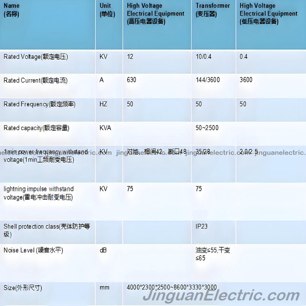 TiraThai's YB Series Prefabricated Compact Substations are precision-engineered for versatility, with baseline specs expandable through customization. Below is an expanded table of key parameters, validated through Jinguan Electric's certified labs and compliant with IEC 62271-202:2020, GB/T 17467-2010, and IEEE/ANSI C2-2017 standards.