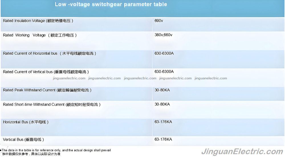 TiraThai's LV Switchgear is precision-crafted for reliability, with customizable parameters to meet specific project needs. Below is a detailed table of key specifications, validated through Jinguan Electric's certified testing and compliant with IEC 61439-1, GB/T 7251.1, and IEEE C37.20.1 standards.